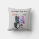 Um trio de Boho estilhaçou penas em preto, laranja/aqua e caída mauve de uma flecha tribal cor-de-rosa sob o ditado motivacional, "Sou mais forte do que sabia." Uma cinza de couro artificial completa a design. A parte de trás do travesseiro também exibe duas grandes penas - uma preta e uma mauve - no gráfico de couro da cinza. Este travesseiro foi criado para que sobreviventes de lesões cerebrais enfatizassem o quão longe eles chegaram, quão duro foi a viagem e quão corajosos eles são na perseverança.