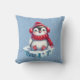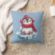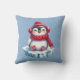 Um pinguim de aquarela fofo sentado em um icebergue vestindo um cachecol vermelho, chapéu, e algemas com flocos de neve.