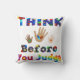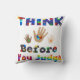 A mensagem de "PENSAR Antes de Julgar" com as mãos da diversidade e da inclusão para respeitar as pessoas com distúrbios do espectro autista e encorajar a gentileza um com o outro.