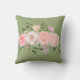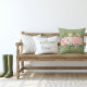 Travesseiro decorativo com uma ilustração aquosa de peões e flores de primavera em tons cor-de-rosa e verde contra um fundo verde mudo. Perfeito para primavera. Travesseiros decorativos são uma forma excelente de adicionar cor às suas cadeiras, sofá e cama - perfeito para quase qualquer quarto na sua casa. Tamanho adicional disponível.