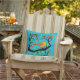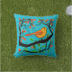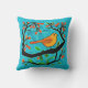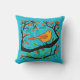Travesseiro em Art Nouveau inspirou ilustração de um pequeno pássaro laranja e bronzeado empoleirado em um galho, com botões de flores de laranja coral, contra um fundo texturizado de turquesa macia