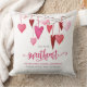 Este travesseiro de berçário bonito apresenta um galho com corações pendurados em tons de rosa e personalizados com os detalhes do seu filho. A parte de trás apresenta um fundo de aquarela cor-de-rosa com coração e borboleta.