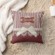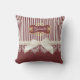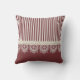 Um travesseiro decorativo quadrado vitoriano, de estilo vitoriano, com faixas verticais cor vermelha e cremosa, gravadas com uma imagem de uma fita colorido creme amarrada num arco doce colada numa corda de pérolas elegantes. Personalize este design elegante adicionando seu nome ao quadro com borda dourada do ornamentado. NOTA: Esta é uma imagem impressa em formato plano. O arco, o rendas, as pérolas e o quadro de ouro NÃO são reais.