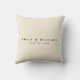Um presente personalizado bonito para os noivos, este travesseiro moderno do estilo da caligrafia caracteriza "feliz nunca após" escova na tipografia rotulada na parte dianteira, e os nomes do casal feliz e a data personalizados do casamento na parte traseira. Uma lembrança bonita que estimem.
