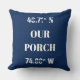 Uma bela maneira de mostrar o quanto você ama sua varanda personalizando esta design com suas próprias coordenadas caseiras. Procure suas coordenadas em um site de mapeamento e simplesmente personalize os números de texto, latitude e longitude para criar seu próprio design personalizado. Uma cor azul quente do marinho no fazer de fundo é ideal para qualquer decoração doméstica.