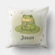 The back background design is a minimalist whimsical pattern set against a clean white canvas. It utilizes a coordinating color palette of soft greens, muted browns, and warm beige tones, but in even softer, more muted shades for visual harmony with the front design. The pattern is composed of evenly spaced, simple organic shapes inspired by the frog's woodland theme.