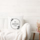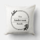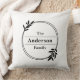 Personalize this elegant botanical wreath design with your family name on the front, paired with a coordinating minimalist leafy branch on the back. This black and white circle wreath frames your custom surname in a timeless serif style, creating refined and balanced home decor. Perfect for throw pillows and cozy living spaces, it adds a clean, modern touch to any sofa or bedroom. Discover more coordinated designs in the Zazzle shop Kokoro_Momo store under BaMic Atelier.