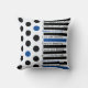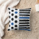 The modern personalized throw pillow is a minimalist, modern geometric one of black and deep blue stripes and polka dots along with up to nine (9) typography fields for inspirational quotes, names, or other personalization. The current motivational phrases are “Dare to dream big” “Live with intention” “Count your blessings” “Believe in yourself” “Illuminate the world” “Celebrate small victories” “You are enough” “Find beauty everywhere” and “Pursue your passion.” Personalize this item or purchase as is.