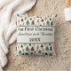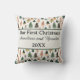 Celebrate the magic of your first Christmas together with this beautifully personalized holiday pillow. Featuring a cozy woodland tree pattern and elegant typography, this design creates a timeless keepsake for couples celebrating a special milestone.
