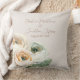 Este romântico travesseiro decorativo floral apresenta um elegante fundo de cor de marfim com flores ranunculus de aquarela. Na parte inferior figura um buquê delicado de pêssego e ranóculo branco. Os nomes de um casal recém-casado e a data do casamento são impressos acima. Você pode personalizar o travesseiro para incluir seus próprios nomes personalizados ou texto.