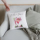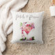 Elegantes Flores de Jardim com Copo de Champanhe, Frutas Vermelhas e texto "Pétalas e Prosecco" Tema Floral Almofada de Arremesso no Chá de Noiva em cores lilás, lavanda, rosa bege, pêssego, damasco e verde.