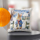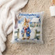 O Peter Rabbit é o casaco de inverno presentes de Natal para bebês e crianças, personalizados com o nome de travesseiro de berçário. Um coelho bonito vestido com uma jaqueta azul e um cachecol vermelho parado no portão da terra maravilhosa do inverno, um adorável item de decoração de berçários.