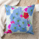 Este impressão de arte travesseiro decorativo apresenta uma tela offset de petúnia floresce contra uma canvas branca com um padrão design de linha quadrada ciano-claro, resultando em um contraste dramático.