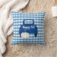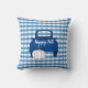 Celebre a Queda com este travesseiro adorável! O travesseiro tem um fundo azul e branco de verificação e um caminhão azul de coleta com uma abóbora branca e o texto "Happy Fall".