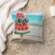 Um picolé de melancia com óculos de sol em areia de praia com pano de fundo cênico do oceano
