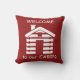 Travesseiro decorativo de algodão Travesseiro decorativo de búfalos vermelhos com cabana e bem-vindos à nossa Cabina.