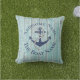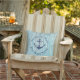 Marinho de nome da família de barcos náuticos Anchor, travesseiro de madeira de chá Conjunto de produtos da Parte Personalizada com o nome do seu barco, nome da família ou qualquer texto que você queira. Apresentando uma âncora azul marinho com um design de corda náutica, em azul marinho sobre o fundo azul-lacrimogêneo.