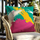 Almofada Pincéis modernos - Rosa, Teal e Amarelo em Creme