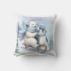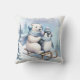 Um urso polar e um pinguim estão vestindo algemas e lenços, alegremente andando por um trenó abaixo em flocos de neve.