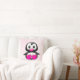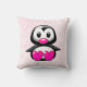 Design pinguim em preto e pastilha elástica, cor-de-rosa, com rosa claro/fundo rosa.