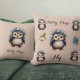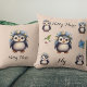 Almofada Pinguins bonitos com nome de flores e bege monogra
