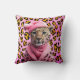 Esta grande almofada de gato apresenta um Leopardo vestido de rosa, com fundo impresso no leopardo, muito colorido e muito fofo!