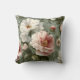 Beautiful pink and white watercolor peonies with mixed greenery on a sage green background were used to create this elegant throw pillow.