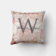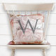 Guarda-casamentos personalizados. Este belo e elegante travesseiro apresenta uma rosa rosa luminosa e um buquê de pedras sobre um fundo cor-de-rosa, coral e aquarela azul. O monograma clássico de cinzas é colocado numa camada translúcida com uma borda interior de folha de ouro falsa. Os primeiros nomes do casal são escritos sobre o monograma inicial em um belo roteiro de caligrafia, com a data do casamento abaixo. O design é o mesmo na frente e atrás. Faz um presente excelente para os recém-casados. Excelente para o seu quarto, cadeira favorita, uma adição decorativa formal à sua sala de estar, ou apenas para uma decoração divertida na sua sala de estar. As cores de todos os campos de texto podem ser alteradas conforme desejar.