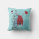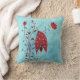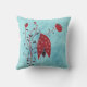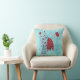 Travesseiro horroroso com uma ilustração carnívora assustadora, que mostra uma flor vermelha a gotejar estranha, com muitos olhos sobre fundo azul resplandecente.