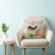 O design de travesseiro decorativo de ao quadrado apresenta uma ilustração antiga de um beija-flor de pelúcia (Chalybura urochrysia.) de pelúcia verde brilhante com penas de cauda marrom ricas sobre uma planta tropical com flores cor-de-rosa vibrantes, sobre um fundo verde-branco sujo com espirais de ouro e silhuetas florais.