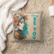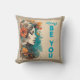 Almofada de Arremesso Poder Floral Vintage Retrô. Uma almofada de sofá com uma mulher usando flores no cabelo, o texto diz "Sempre seja você".