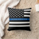 Este travesseiro apresenta uma bandeira americana de linha azul fina e negra da polícia branca, juntamente com o nome de um oficial para você personalizar.