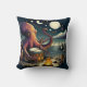 Um polvo toca energeticamente um tambor perto de uma fogueira na praia, sob um céu estrelado com navios navegando a distância.