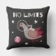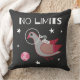 A camiseta bonita tem pombo a flutuar no espaço exterior com a terra e as estrelas à distância. O texto diz "sem limites" para uma mensagem encorajadora e inspiradora. Belo travesseiro decorativo para as crianças.
