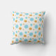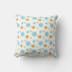 Linda almofada com pontos de bolinhas dourados e turquesa em fundo branco.