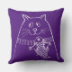 An Adorable Drawn Cat With Her Fish On A Purple Large Throw Accent Pillow. Perfect For A Girls Bedroom Décor.