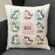 Este travesseiro decorativo personalizado apresenta um conjunto de rabiscos de unicórnio esboçados em um estilo caprichoso e divertido, com expressões alegres contra fundos de cor pastel.