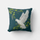 Uma mão ilustrada de pomba branca voa sobre ramos de oliveira num fazer de fundo teal profundo deste travesseiro, uma decoração alegre de férias ou boho recolheu sotaque doméstico.