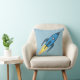 Travesseiro decorativo de navio de foguete azul que sai do espaço. O design de foguetes de cartoon vintage é perfeito para um tema espacial, meninos, decoração de quarto, berçário ou presente de chá de fraldas. Excelente para crianças interessadas em foguetes, navios espaciais, exploração espacial, ciência aeroespacial, engenharia aeronáutica, NASA, cifi, astronautas ou coisas encontradas no cosmos, como planetas, estrelas, galáxias, a lua etc. Se isso for para presente, materiais de empacotamento correspondentes podem ser encontrados em Artesanatos Fornecimentos na lista de Departamentos. Atire na lua. Eu te amo na lua e de volta.