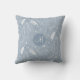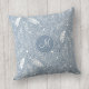Este travesseiro decorativo bonito de estilo "boho" apresenta um padrão de penas, flores e paisagens desenhadas à mão em branco sobre um fundo azul empoeirado com sotaques azuis mais claros e escuros - personalize com seu monograma - por katz_d_zynes