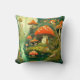 Os habitantes da Terra de Quind convidam-vos para o nosso mundo dos cogumelos brancos. A vida é mais simples aqui na floresta. Venha sonhar com coisas impossíveis conosco. A frente desse travesseiro ilustra uma aldeia cogumelo com cogumelos amanita vermelhos e brancos e uma escada de madeira vestida que levanta uma colina, tudo em uma floresta de diferentes tons de verde. A parte de trás do travesseiro é verde. Dar este travesseiro ao tipo de pessoa que vive num buraco no chão ou numa caverna, e não recebe muita luz. Ilustração digital criada por Quindolyn + AI.