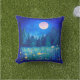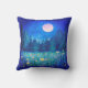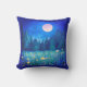 Travesseiro decorativo numa paisagem aquosa de um campo de flores silvestres e uma floresta escura sob uma lua de cheio