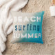 Travesseiro decorativo de Oceano de Areia de Tipografia de Verão de Surfe de Praia. Tipografia de Praia Surfing em cores brancas e azuis na areia e fundo oceânico. Excelente como decoração de casa de praia. O verão vibe para você. Você pode alterar qualquer texto no travesseiro.