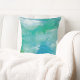Travesseiro decorativo temático da praia apresenta um design de aquarela abstrato em turquesa tropical, espuma do mar verde e aqua azul. Perfeito para decoração náutica, costeira, praia e artéria. Trabalho de arte por KL Stock.