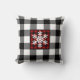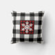 Este travesseiro decorativo preto e branco, fresco e moderno, de xadrez de Buffalo tem um grande quadrado central, vermelho e preto, com um floco de neve branco. Personalize-o para adicionar seu próprio texto, se quiser, mas achamos que ele parece excelente como está.