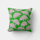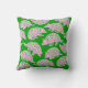 Um travesseiro verde com ilustrações lúcidas de tatus de pré-disquete rosa e verde. O brilhante tecido verde e os tatu-papoilos, vivos, criam uma atmosfera caprichosa e divertida, perfeita para uma decoração em casa de verão!