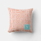 Almofada Preppy Greek Key Monogram – Coral & Turquoise