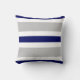 Travesseiro decorativo cinzento do desenhista da listra dos azuis marinhos & do branco feito no presente de América de zazzle.com/americanmademojo*.
