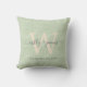 Almofada com efeito de linho verde para casamento com texto em cinza escuro em caligrafia chic. Adicione os seus nomes, monograma e data de casamento. Excelente presente para recém-casados. Exclusivamente desenhado pelo Happy Dolphin Studio. Se precisar de ajuda ou de produtos a condizer, contacte-nos em happydolphinstudio@outlook.com.