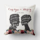 VINTAGE MODERNO MEETS - Ideia perfeita de presente para recém-casados! Esta bela almofada apresenta uma pintura feita de aquarela floral em burgundy, marinho e blush elegantemente combinado com silhuetas vintage de Elizabeth Bennet e Darcy, duas das personagens mais amadas e icônicas da literatura inglesa, do romance romântico "Orgulho e Preconceito" escrito por Jane Austen. Cada silhueta tem citações românticas do romance, escritas em letras caprichosas. Personalize a almofada com os nomes da noiva e do noivo e também a data do casamento. A cor de fundo da almofada está definida como branca, mas sinta-se livre para escolher uma nova cor de preenchimento para combiná-la com o tema do seu casamento. Clique no botão "Personalizar mais" para reorganizar os elementos, se necessário.